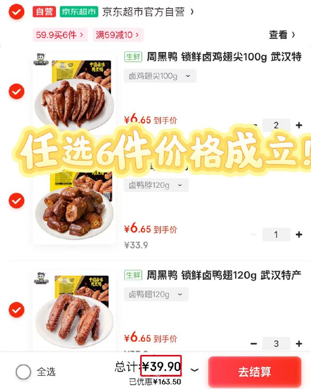 任选6件39.9元;才6.6元/盒
