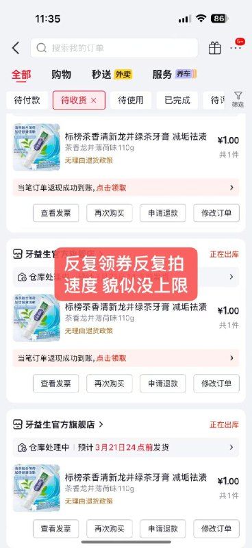 速度现在可以反复领券反复拍