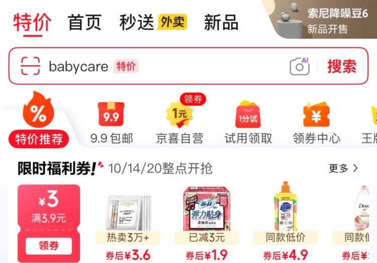 ❶京东特价,如图领4.9-4券