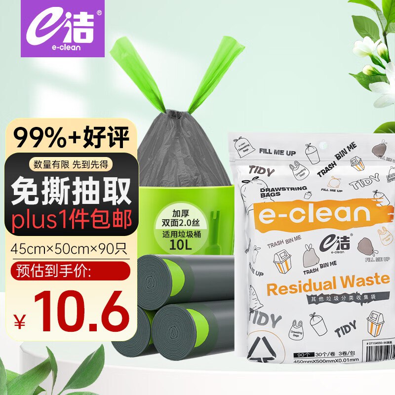 🎒 自营e洁 自动收口抽绳垃圾袋90只