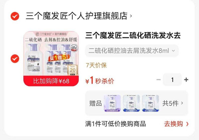 1亓!二硫化硒洗发水48ml