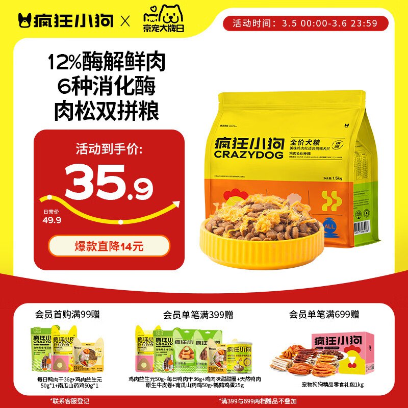 疯狂小狗拼派肉松狗粮1.5kg3斤